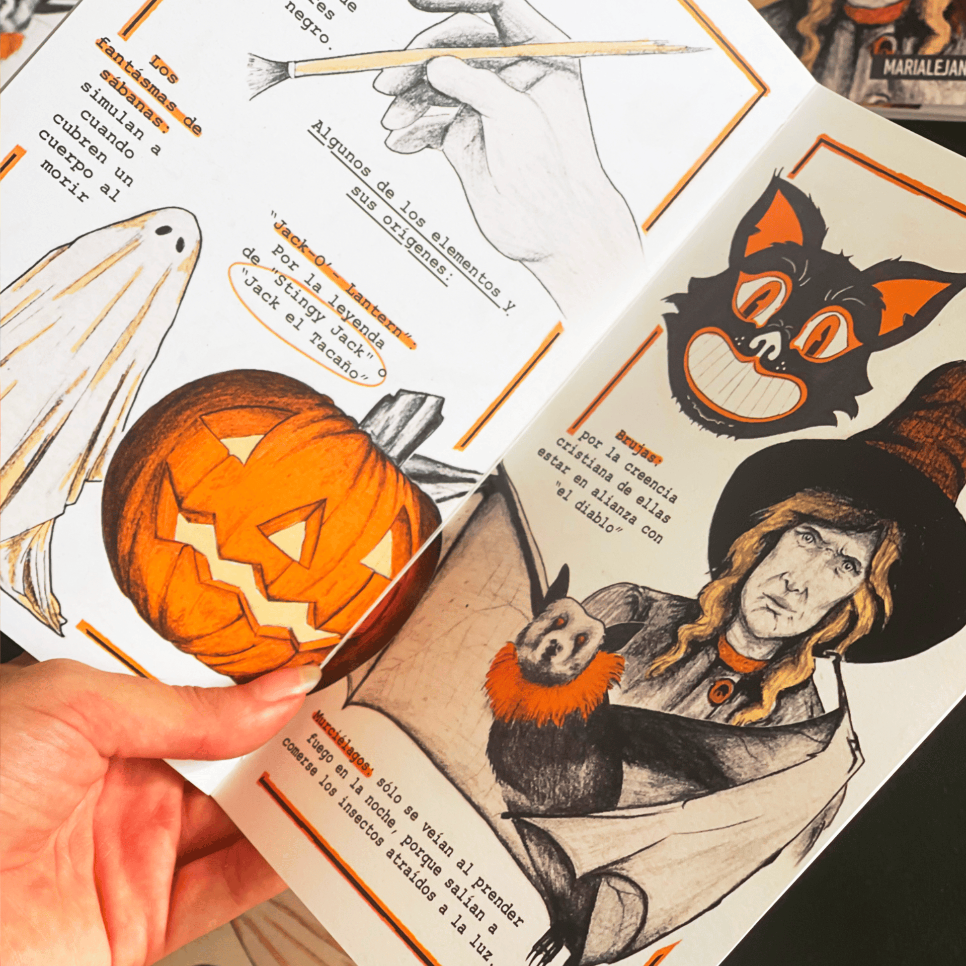 "Halloween: Historia Arte y Curiosidades" es un zine y/o booklet de 12 páginas donde se cuenta la historia de Halloween desde sus inicios siendo una festividad pagana, hasta la tradición que conocemos y practicamos hoy en día.